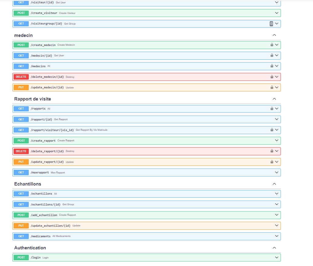 - Toutes les routes de la section de "Rapport de visite"